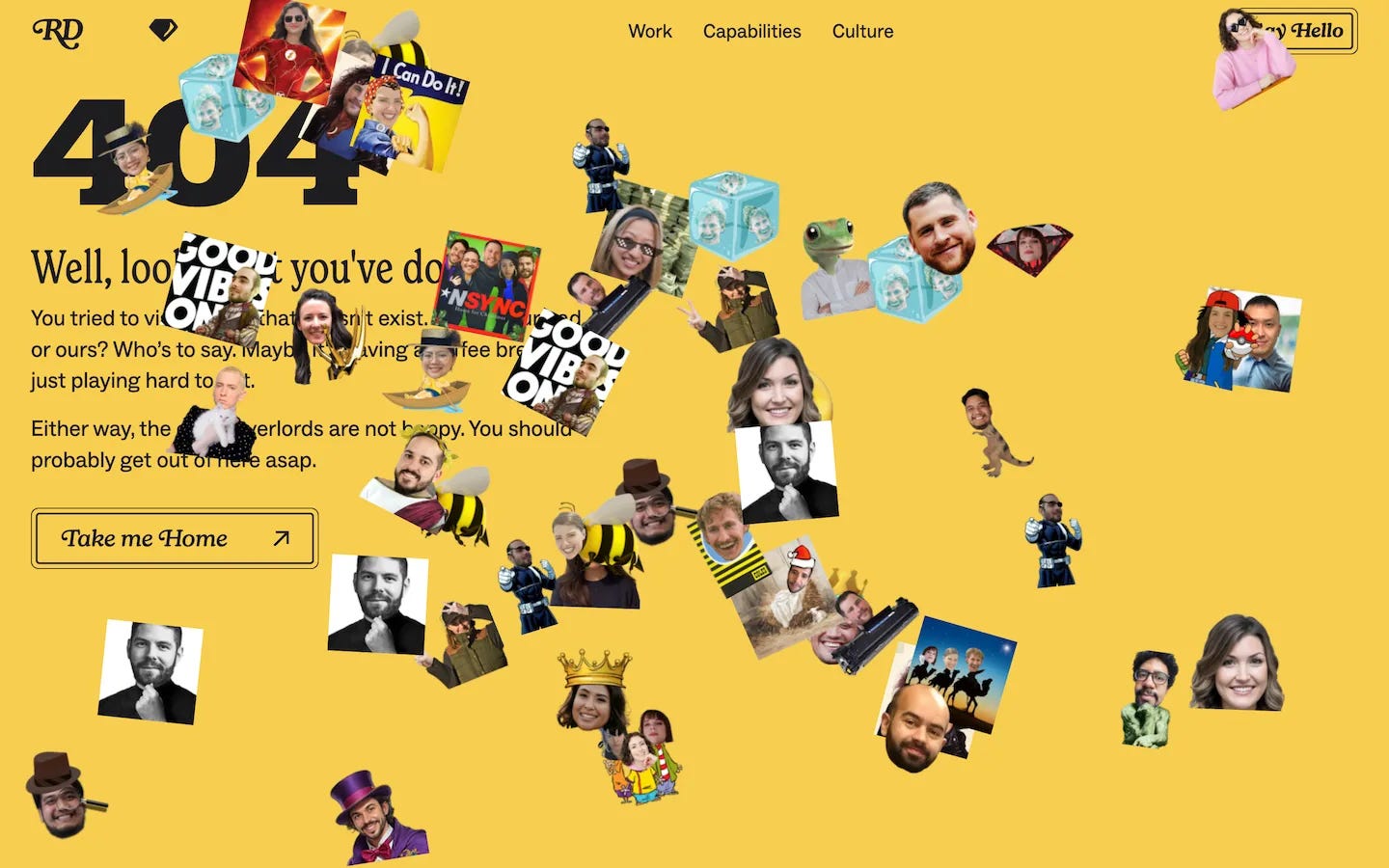 Raredays does this nicely, using their people stickers on their 404 page to hint at their agency's personality and team-focused culture.